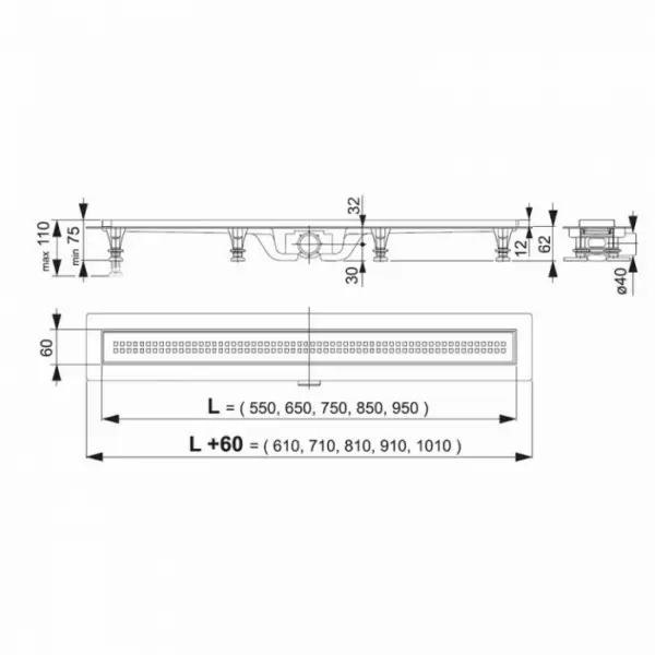 Желоб водоотвододящий Симпл 550 мм, пластик, решетка из нержавеющей стали, матовый ALCAPLAST APZ9-55.