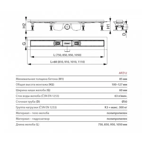 Купить Желоб водоотводящий APZ12-950 с порогами для перфорированной решетки, с горизонтальным стоком артикул: 132394 в интернет-магазине ESMAG - Челябинск.