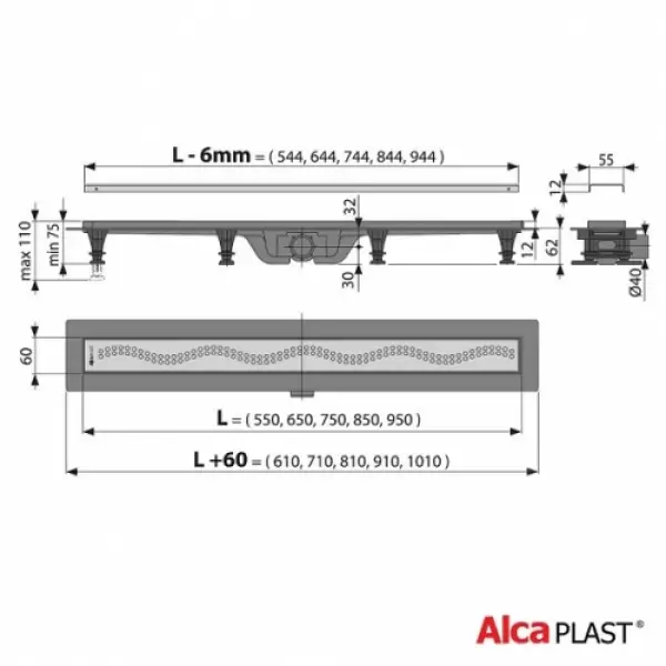 Купить Желоб водоотводящий L 650 мм, пластик, с решеткой из нерж. стали, матовый, APZ10-650M артикул: 137066 в интернет-магазине ESMAG - Челябинск.