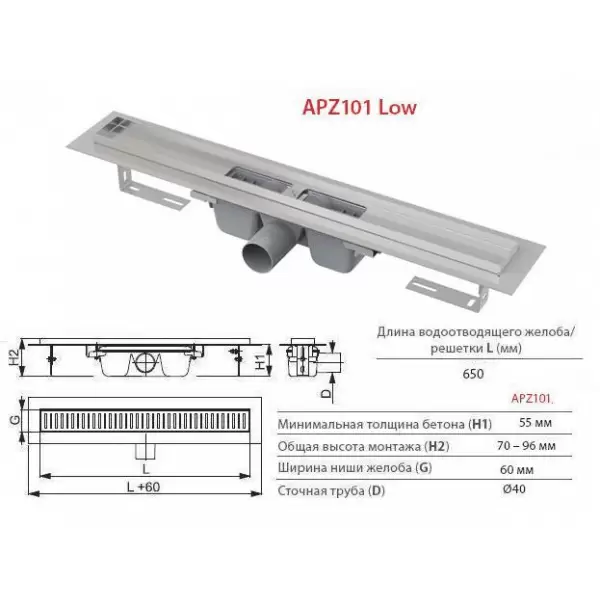 Купить Желоб водоотводящий с порогами для перфорированной решетки, с горизонтальным стоком 650 мм APZ101 артикул: 118879 в интернет-магазине ESMAG - Челябинск.