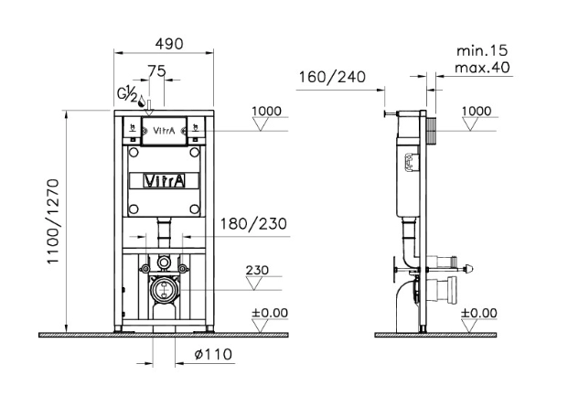 -Механическая Инсталляция VitrA для установки за гипсокартонной перегородкой и перед капитальной стеной.