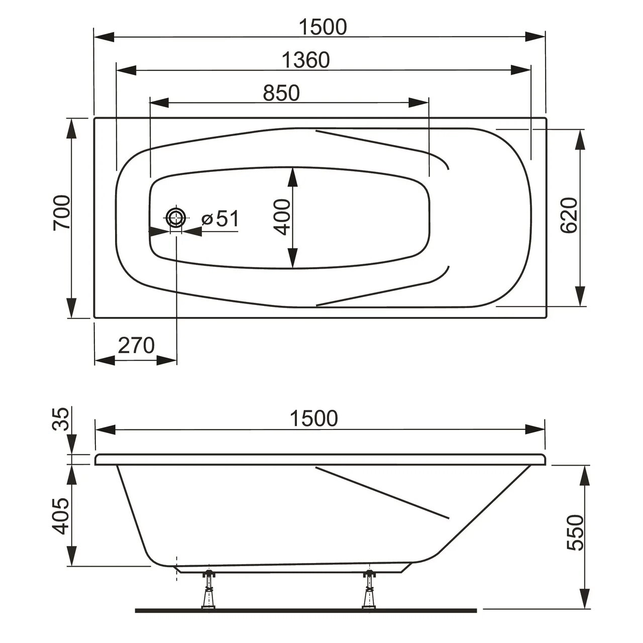 Купить Акриловая ванна ARONIA 150х70, арт.VPBA157ARN2X-04 артикул: 191019 в интернет-магазине ESMAG - Челябинск.