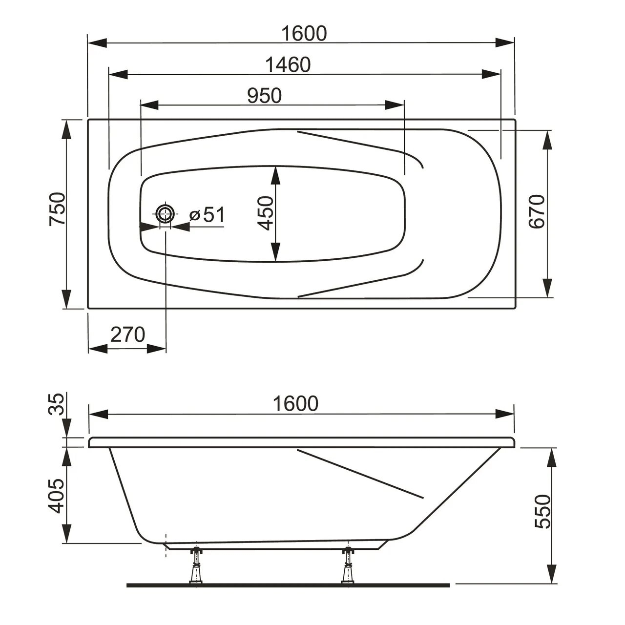 Купить Акриловая ванна ARONIA 160х75, арт.VPBA160ARN2X-04 артикул: 191020 в интернет-магазине ESMAG - Челябинск.