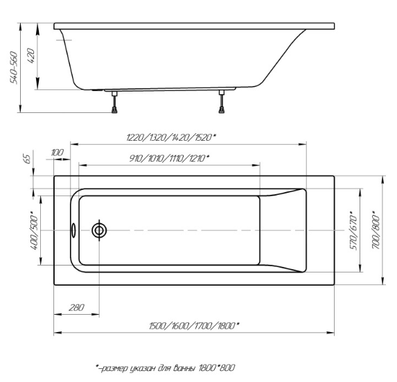 Акриловая ванна Eco-Friendly Калибри 180x80 KL180-0000001 Aquatek