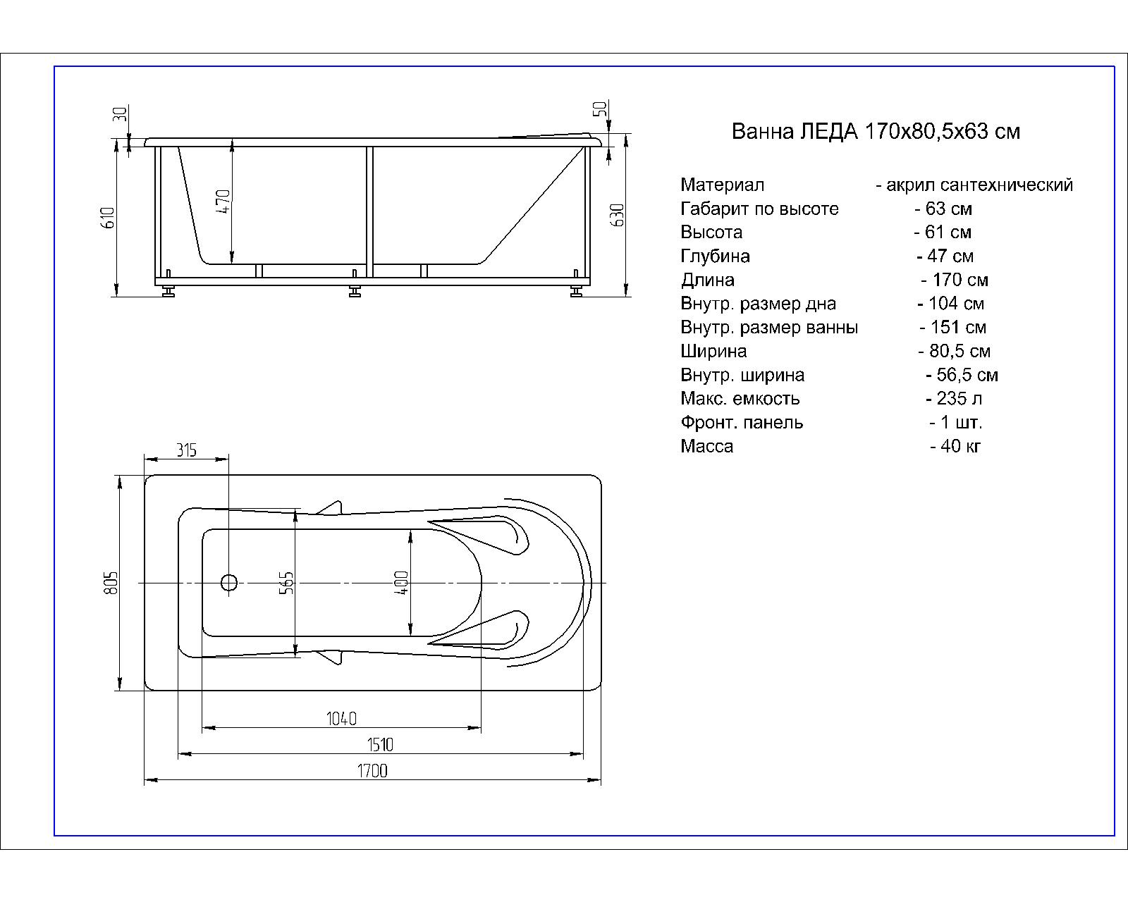 Купить Акриловая ванна Леда 170х80 LED170-0000143 Aquatek артикул: 226082 в интернет-магазине ESMAG - Челябинск.