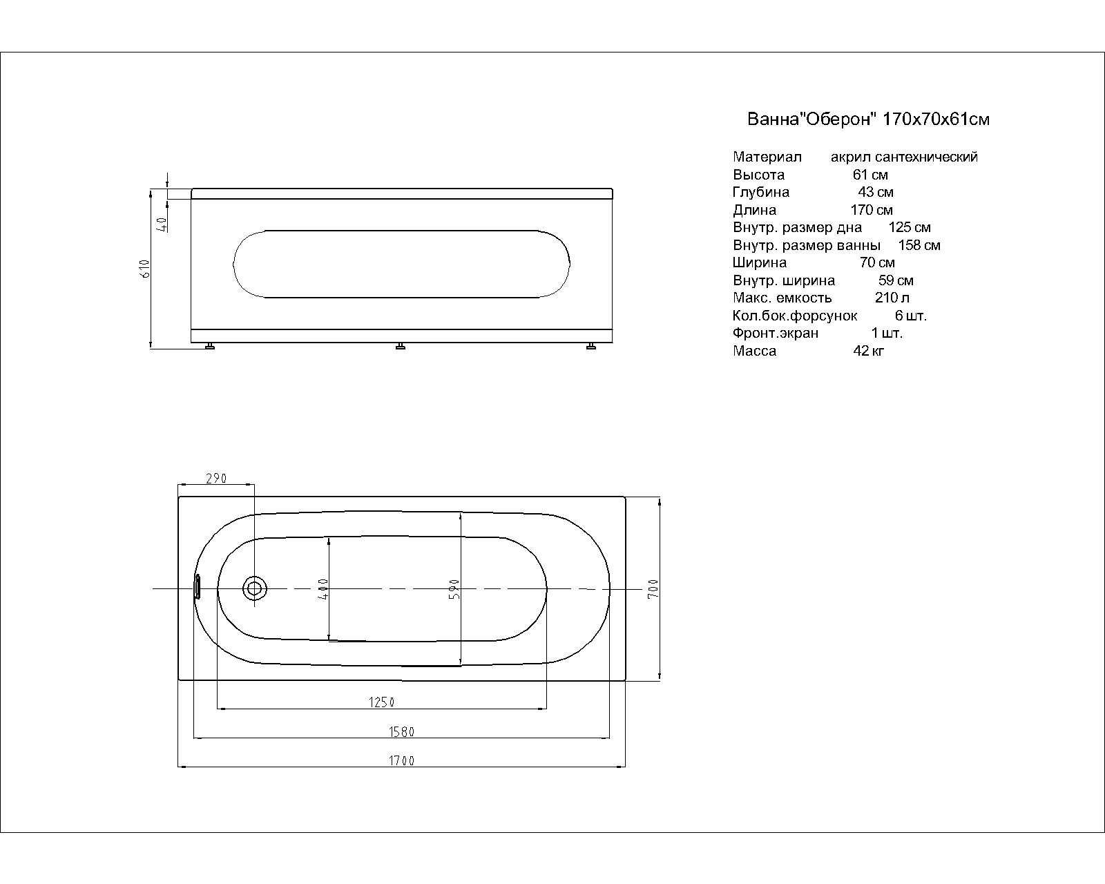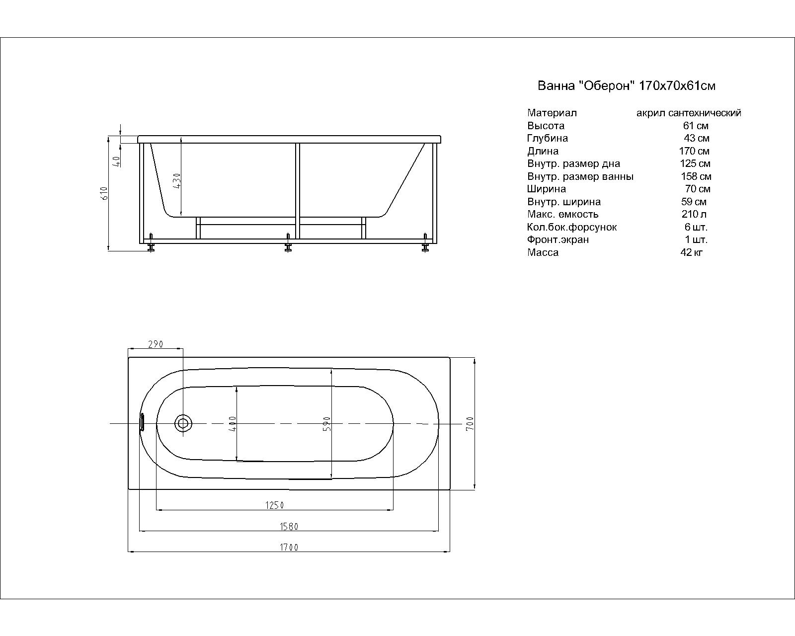 Купить Акриловая ванна Оберон 170х70 OBR170-0000165 Aquatek артикул: 226072 в интернет-магазине ESMAG - Челябинск.