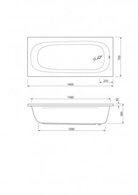 Акриловая ванна PIAVE-160-70-42 1600x700x420 CEZARES