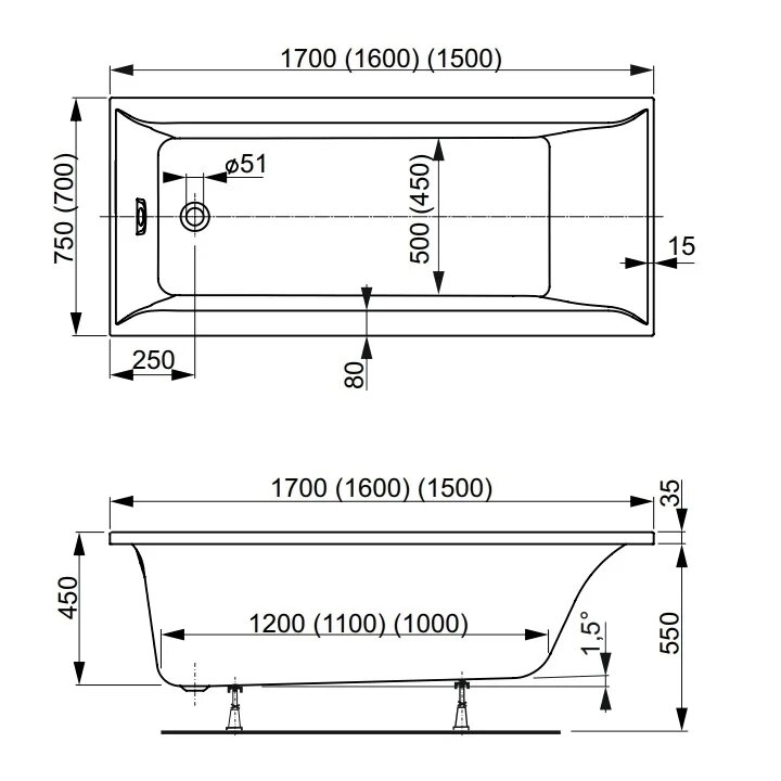 Купить Акриловая ванна VERONELA 150х70, арт.VPBA157VEA2X-04 артикул: 191031 в интернет-магазине ESMAG - Челябинск.