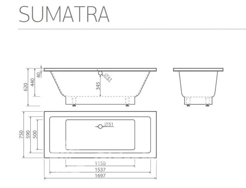 Дизайн ванны ESSE Sumatra соткан из прямых линий и если перевернуть ванну верх ногами, то она напоминает незаконченную перевернутую пирамиду. Внутреннее пространство получилось объемным и вместительным несмотря на небольшие габариты ванны. Наружная часть ванны как и внутренняя покрыта эмалью, благодаря чему ванну не нужно закрывать экраном. Ванну можно устанавливать как отдельно-стоящую, так и для пристенного монтажа. С длинной стороны ванны где сделать отверстие для перелива в нижней части ванны находится техническое отверстия для комфортной установки и дальнейшего обслуживания слива-перелива.