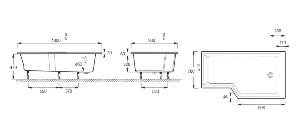 J.Delafon E6D000R-00 ванна BAIN-DOUCHE NEO /160х90х70/ (бел)