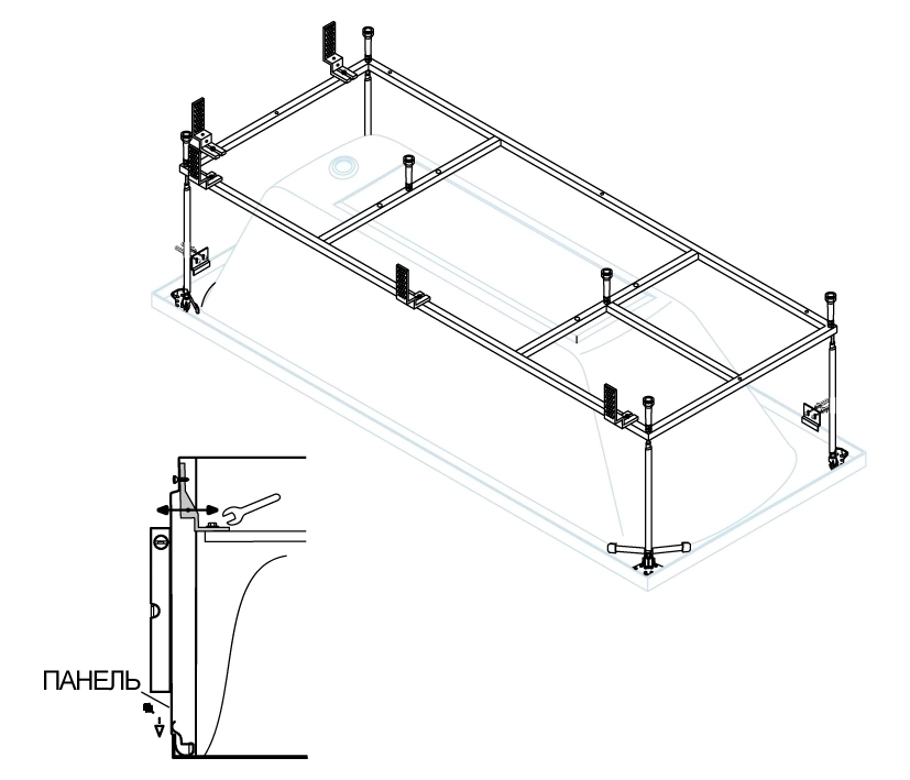 Металлический каркас для акриловой ванны ECO, MODENA EMP-180-80-MF-R.