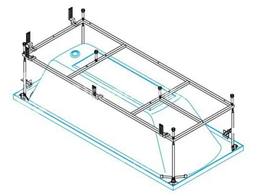 Металлический каркас используется для выравнивания и дополнительной поддержки ванны, в случаях, когда ванна встраивается, либо при установке комплекта панелей.