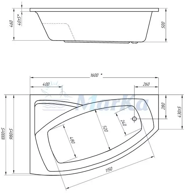 Ванна акриловая Aura левая 1600х1050 1Марка в г.Челябинск
