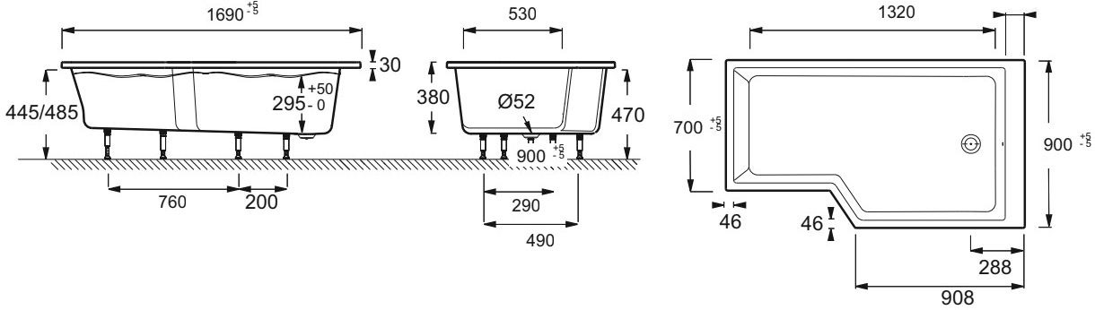 Купить Ванна акриловая BAIN-DOUCHE NEO правая 1700х900 E6D002R-00 артикул: 45733 в интернет-магазине ESMAG - Челябинск.
