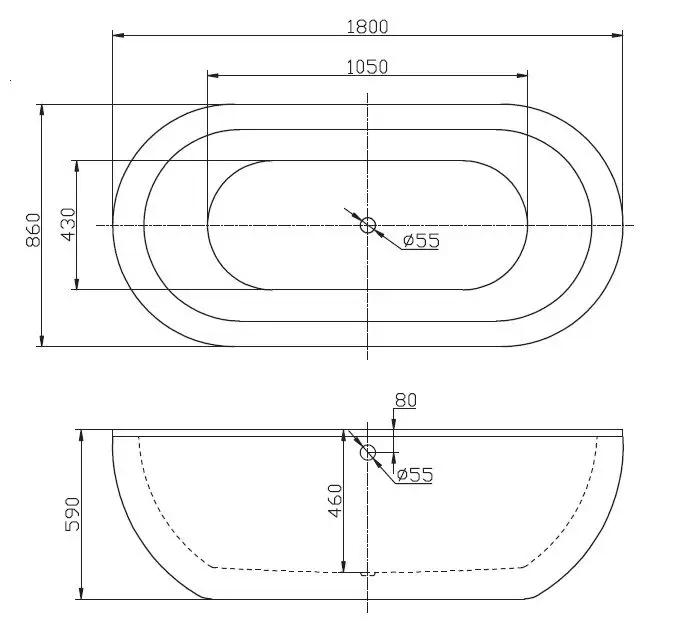 Овальная свободностоящая ванна BelBagno BB13-1800 из двойного акрила.