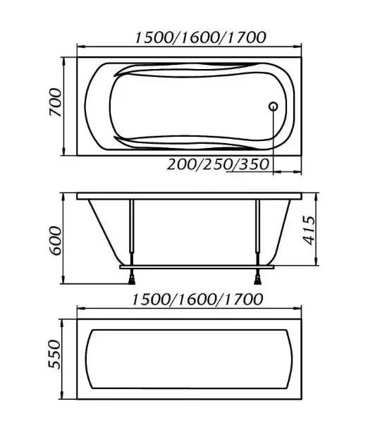 Закругленные формы и плавные линии создают приятный вид и практичность при приеме ванны.