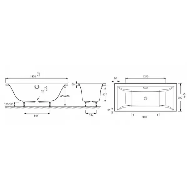 Купить Ванна акриловая ELITE 1900х900 E6D033RU-00 артикул: 126887 в интернет-магазине ESMAG - Челябинск.