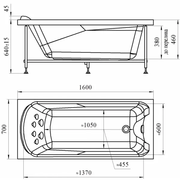 Ванна акриловая ЛАРЕДО 2, 1600х700, рама-подставка RADOMIR.