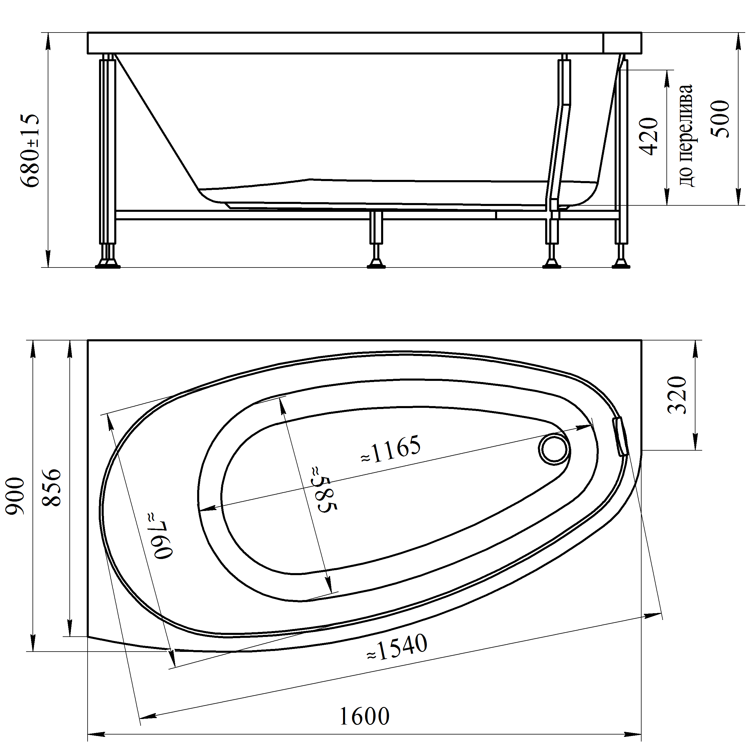 Ванна акриловая ОРСИНИ, 1600х900 (правое или левое исполнение), рама-подставка RADOMIR.