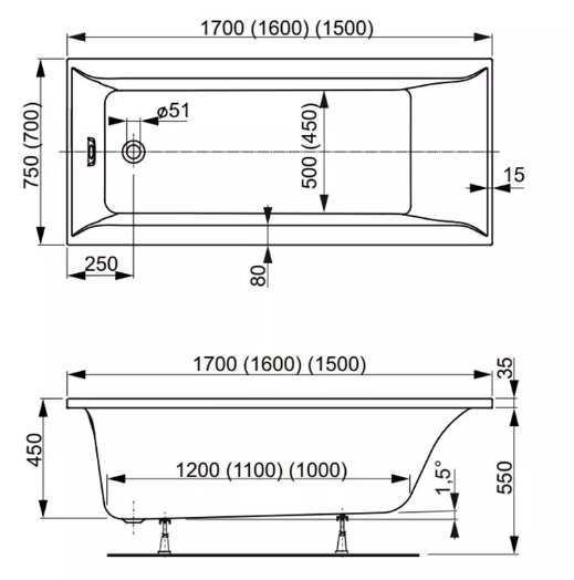 Ванна акриловая VERONELA 150х70 VPBA157VEA2X-04 VAGNERPLAST