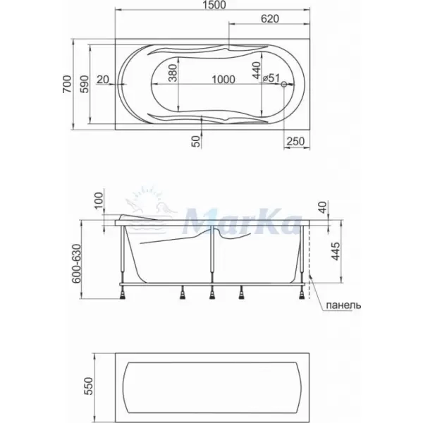 Купить Ванна акриловая Vita 1500х700 артикул: 121843 в интернет-магазине ESMAG - Челябинск.