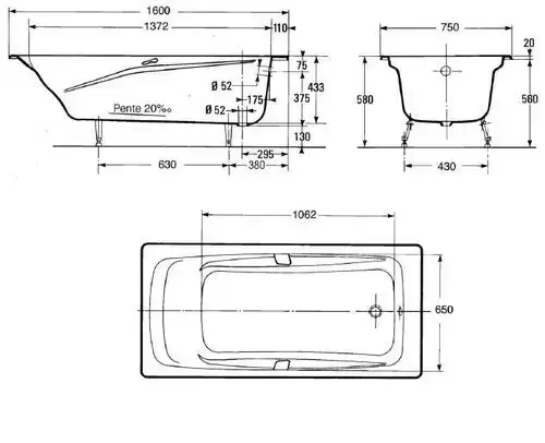 Ванна чугунная REPOS 1600х750 E2929 Jacob Delafon.