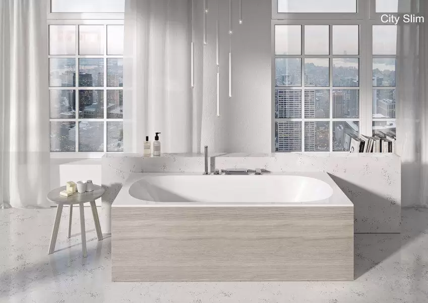 Вам никогда не надоест естественность, элегантность и умеренность, присущая данной коллекции. Ванна City Slim имеет чрезвычайно низкий верхний край (высота всего 15 мм) и новые передние панели. Большие преимущества ванны – ее обтекаемые панели, изготовленные в цвет грецкого ореха, дуба, матового или чисто белого сатина. Панель способна полностью изменить стиль ванной. Она отличается хорошей водонепроницаемостью, компактностью и не имеет заметных переходов.