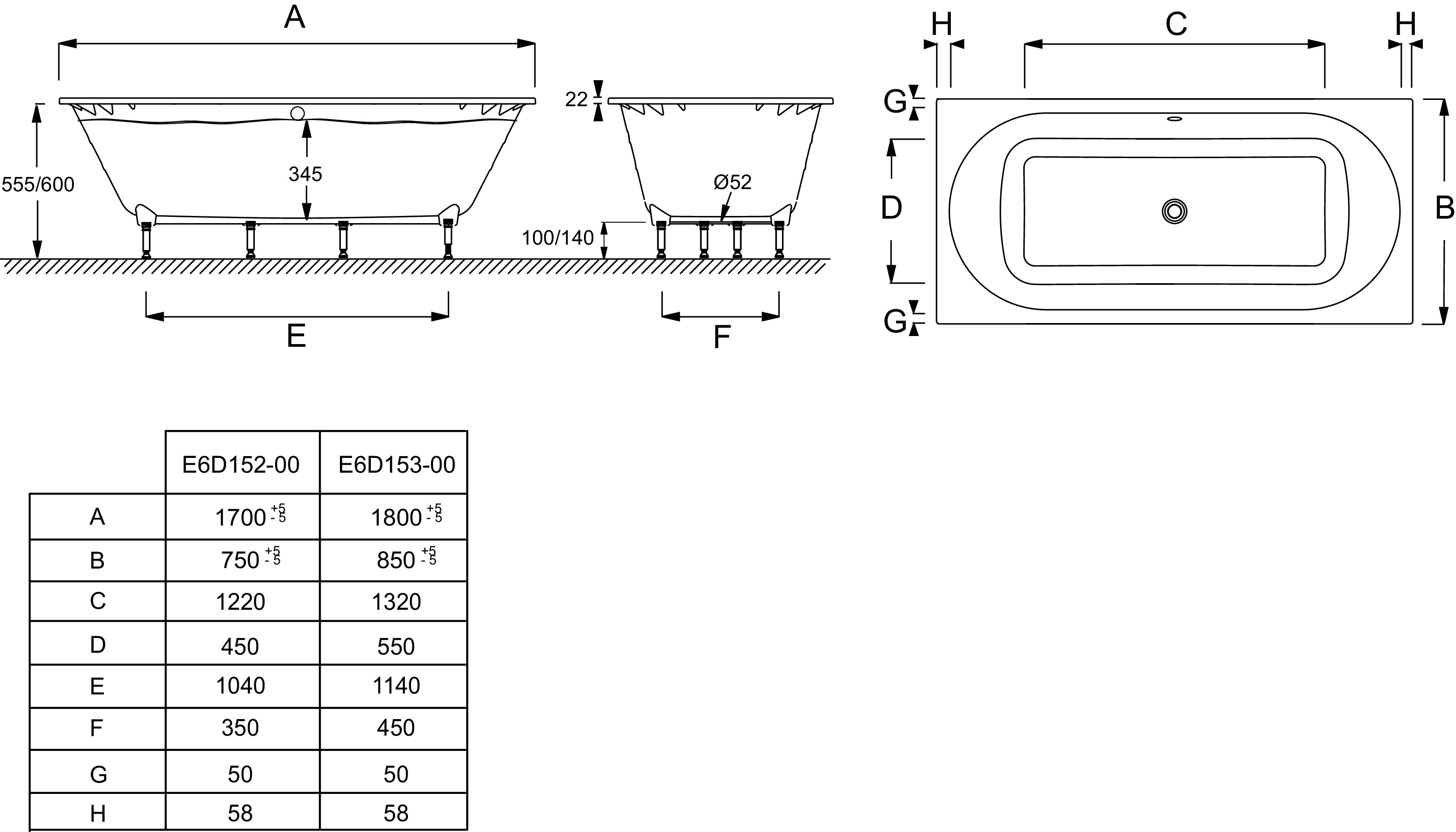 - Прямоугольная ванна 180 x 85 см из материала Flight.