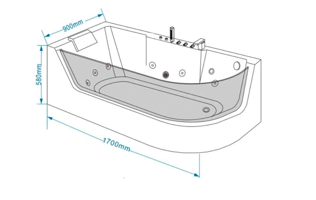 - Ванна размером 1700х800х590 мм (толщина акрила 5 мм).