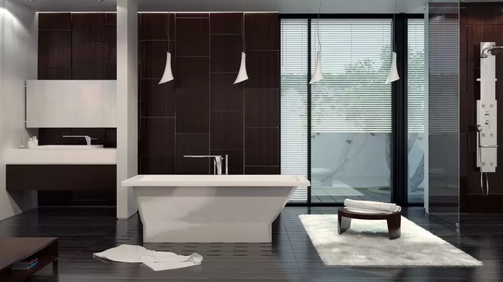 Белая ванна из литьевого мрамора ESSE JAMAICA, идеально сочетает лаконичный прямоугольный дизайн с новейшими технологиями.