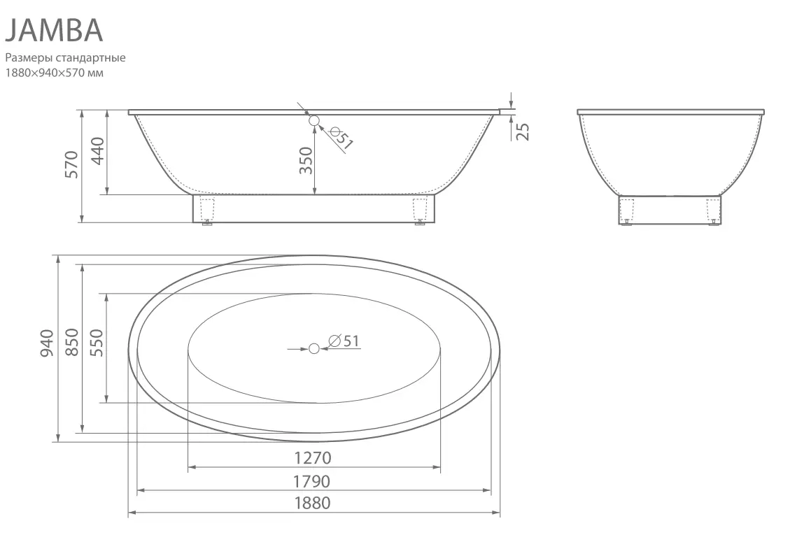 Купить Ванна мраморная JAMBA 1880×940 артикул: 64331 в интернет-магазине ESMAG - Челябинск.