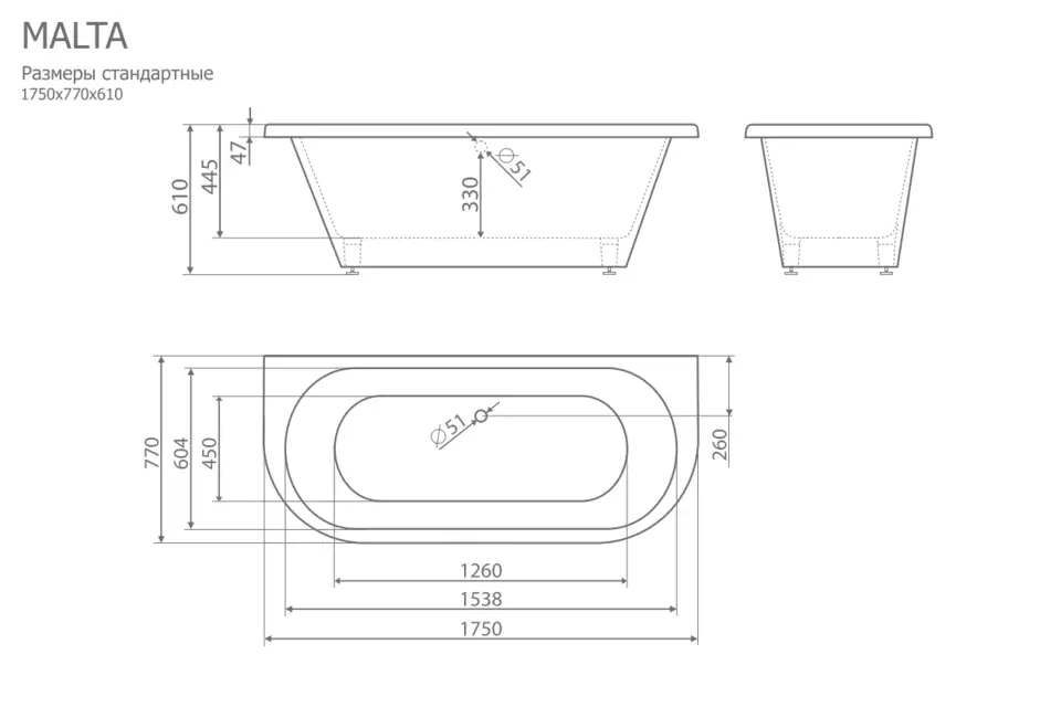 Купить Белая ванна мраморная MALTA 1745*745*610 артикул: 64311 в интернет-магазине ESMAG - Челябинск.