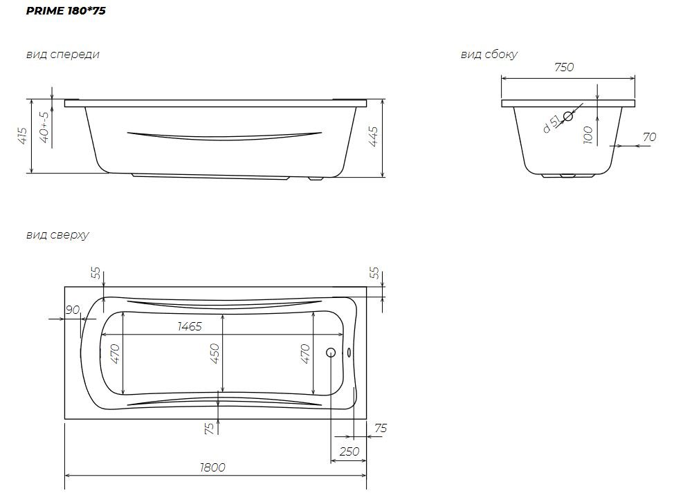 Купить Ванна PRIME 180х75 01пра1875 1 Марка артикул: 210911 в интернет-магазине ESMAG - Челябинск.