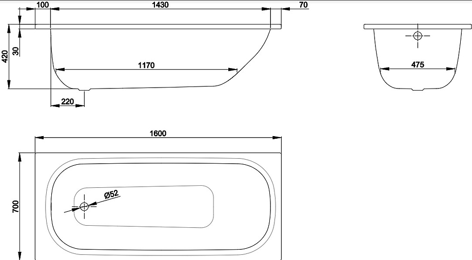 Размеры: 1600х700х420 мм
