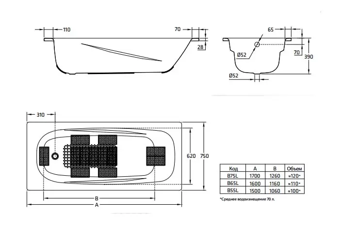 Купить Ванна стальная Universal Anatomica 1700х750 B75U артикул: 84205 в интернет-магазине ESMAG - Челябинск.