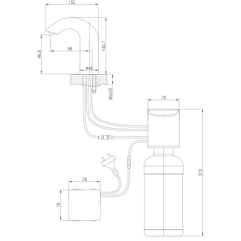 Дозатор жидкого мыла, встраиваемый бесконтактный
