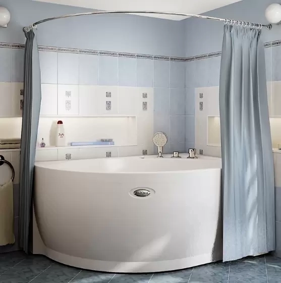 Карниз для шторки на ванну «Модерна» — угловой карниз радиальной формы с размерами 160х100 см. Его изгиб копирует контуры одноименной ванны, что обеспечивает практичность конструкции. Карниз выглядит модно и прекрасно смотрится в любом интерьере.