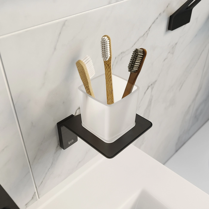 Уникальные преимущества: Пластиковая проставка AntiSlip между металлической частью и стеклянной надежно фиксирует изделие предохраняя его от падения. Закаленное стекло. Чёрный матовый цвет коллекции аксессуаров станет ярким