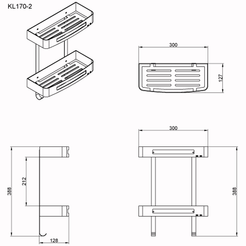 Купить Полка прямоугольная двухэтажная AZ-170-2B, Azario артикул: 214529 в интернет-магазине ESMAG - Челябинск.