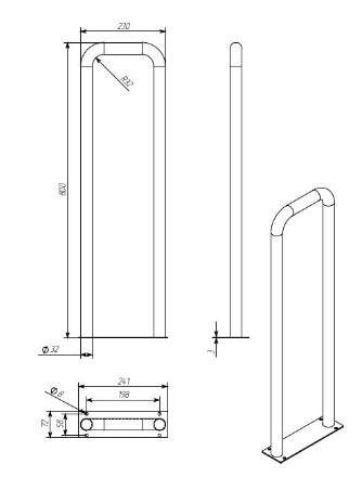 - Материал: нержавеющая сталь AISI 304, диаметр трубы 32х1,5 мм. Толщина металла и диаметр трубы поручня делают его очень прочным