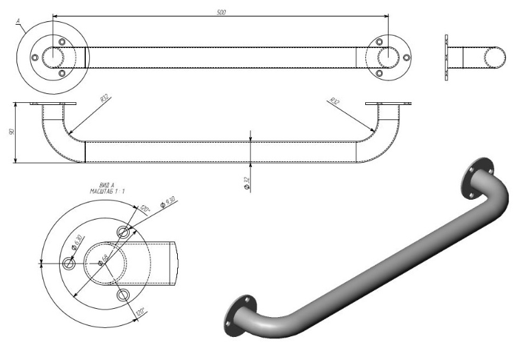 Основной материал – труба из нержавеющей стали диаметром 32,0мм х 1,5мм.