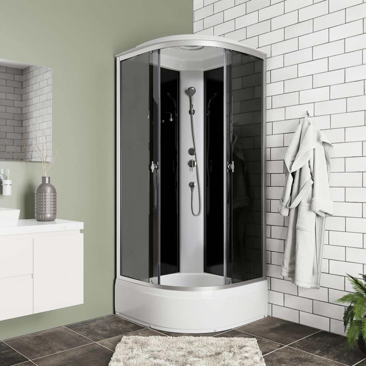 Стильная душевая кабина Niagara Eco E90/26/TN 900х900х2150 сочетает в себе высокую функциональность, практичность и надежность. Для изготовления применяют безопасное закаленное стекло толщиной 4 мм, надежно фиксируемое алюминиевым профилем. Цвет профиля хром. В комплекте полочка, смеситель, душевой гарнитур, тропический (верхний) душ.