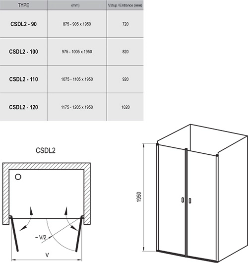 Изделие устанавливается в облицованную кафелем нишу на поддоны RAVAK PERSEUS PRO, PERSEUS PRO CHROME, GIGANT PRO, PERSEUS PRO FLAT, GIGANT PRO FLAT, GIGANT PRO CHROME или непосредственно на пол со встроенным душевым каналом или трапом. Не комбинируется с неподвижной стенкой CPS.