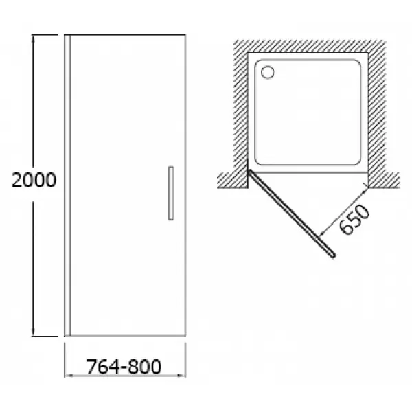 Дверь CONTRA распашная в нишу 80х200 (прозрачное стекло) E22T80-GA J.Delafon.