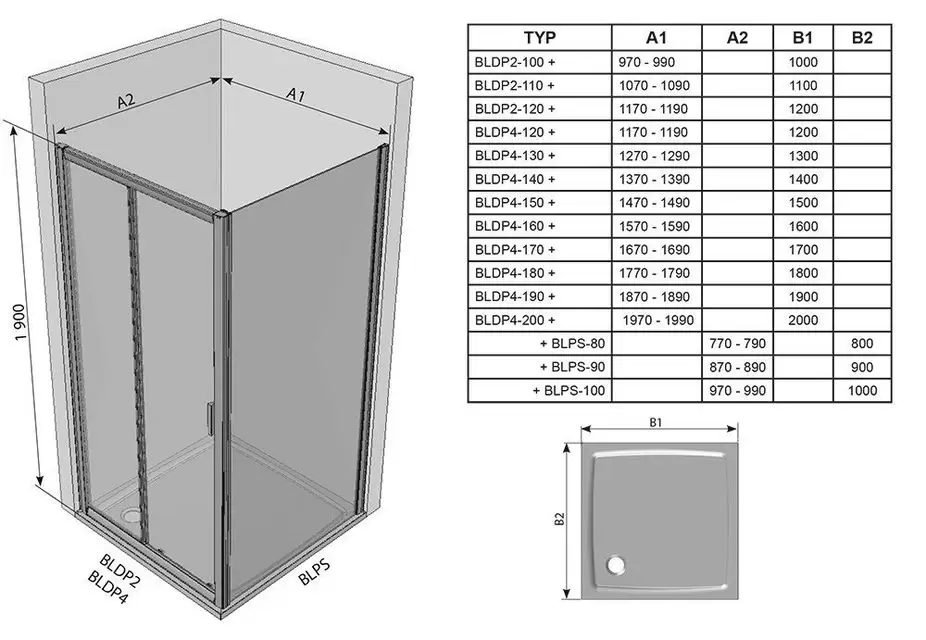 Двери душевые BLDP2-100 блестящий + стекло Графит RAVAK 0PVA0C00ZH устанавливаются в угол ванной комнаты (идеальны для установки в нише или комбинации с неподвижной стенкой BLPS) на поддоны RAVAK Perseus, Perseus Pro, Perseus Pro Flat, Perseus Pro Chrome, Gigant Pro, Gigant Pro Flat, Gigant Pro Chrome или непосредственно на пол со встроенным душевым каналом или трапом.