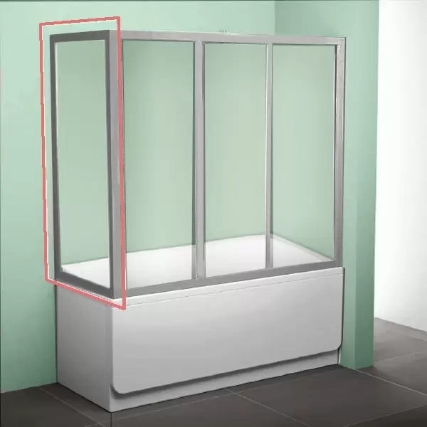 Неподвижная стенка для ванны APSV-80 сатин+Раин 95040U0241 - неподвижная часть, витраж из пластика Rain, цвет профиля сатин (матовый хром), не используется самостоятельно, а только в комбинации со шторкой для ванны для создания закрытого душевого пространства вокруг ванн Classic, Sonata, Campanula II, Vanda II и Lilia или любых классических прямоугольных ванн с ровным передним бортом. Для соединения служит угловой профиль, который входит в комплектацию неподвижной стенки.