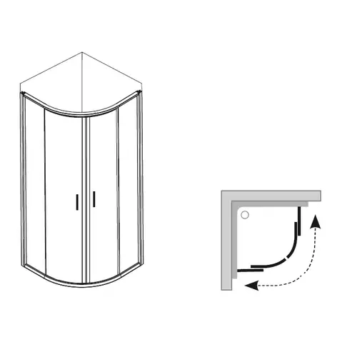 Уголок состоит из двух прямых и двух закругленных стекол, которые образуют раздвижные двери.