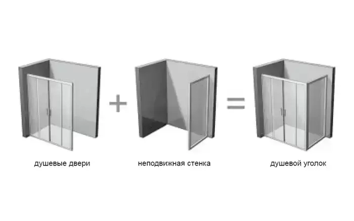 На изображении представлена конструкция состоящая из непосредственно неподвижной стенки и душевой двери ASDP3.