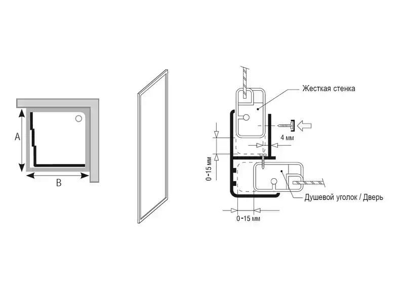 На изображении представлена конструкция состоящая из непосредственно неподвижной стенки и душевой двери ASDP3.