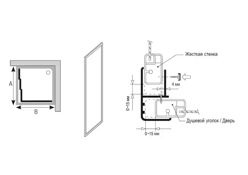 На изображении представлена конструкция состоящая из непосредственно неподвижной стенки и душевой двери ASDP3.